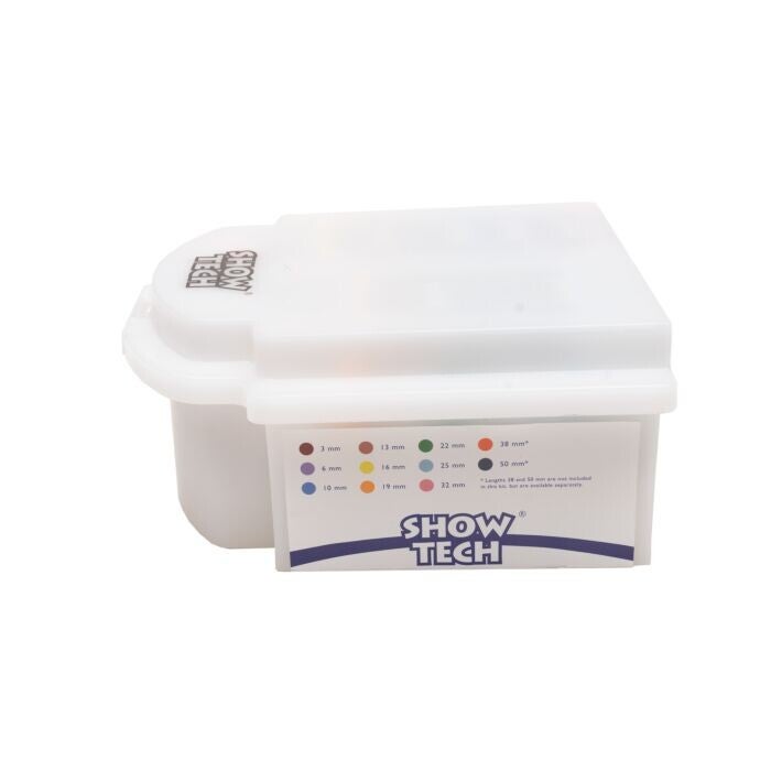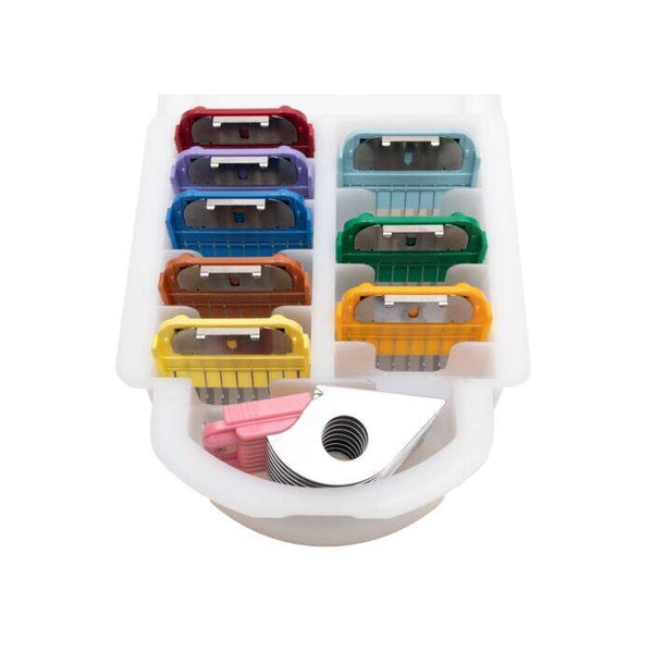 De set omvat 9 verschillende maten, in 9 verschillende kleuren (3, 6, 10, 13, 16, 19, 22, 25 en 32 mm). Het is aangeraden de opzetkammen te gebruiken op een scheerkop 30 om schade aan de scheerkop te voorkomen.