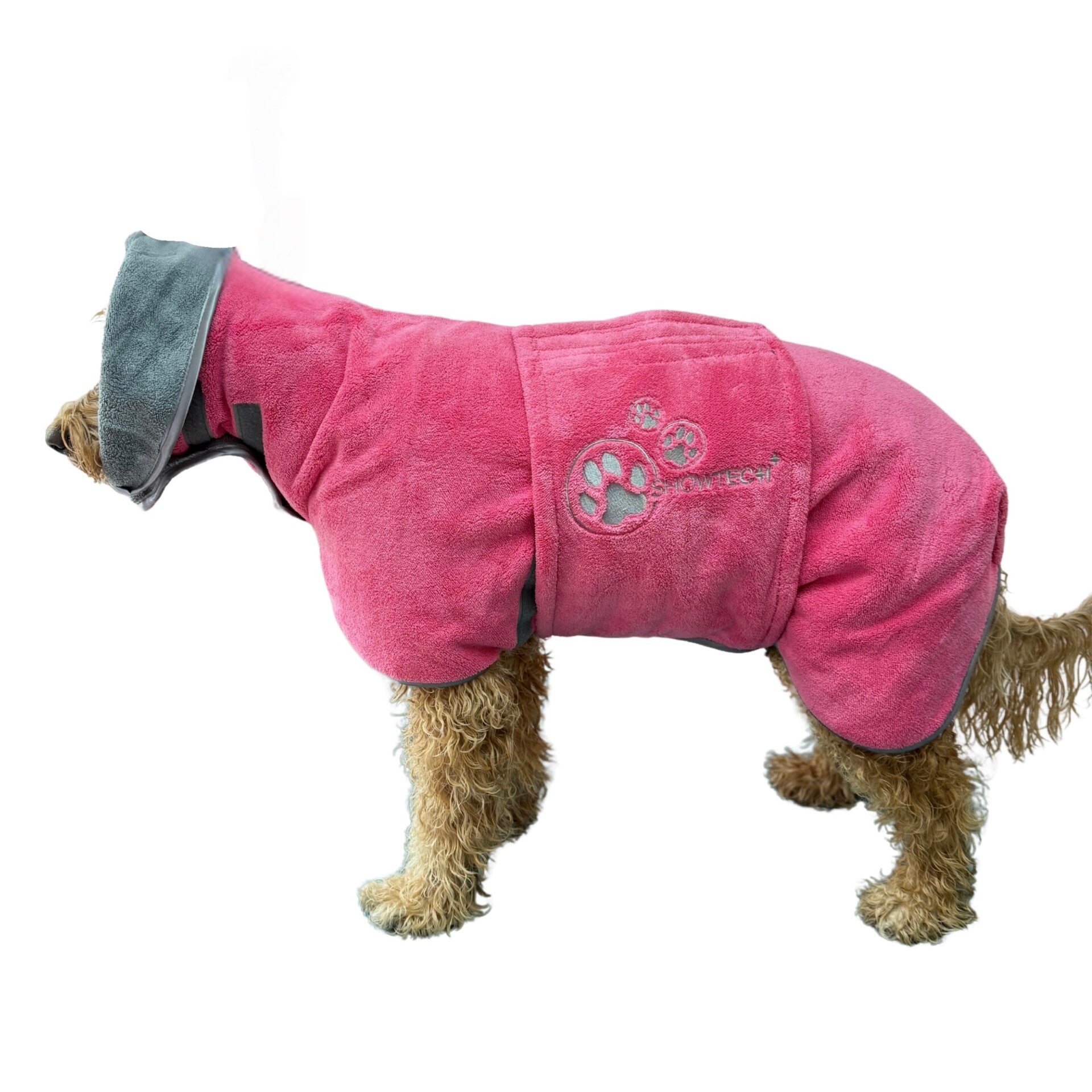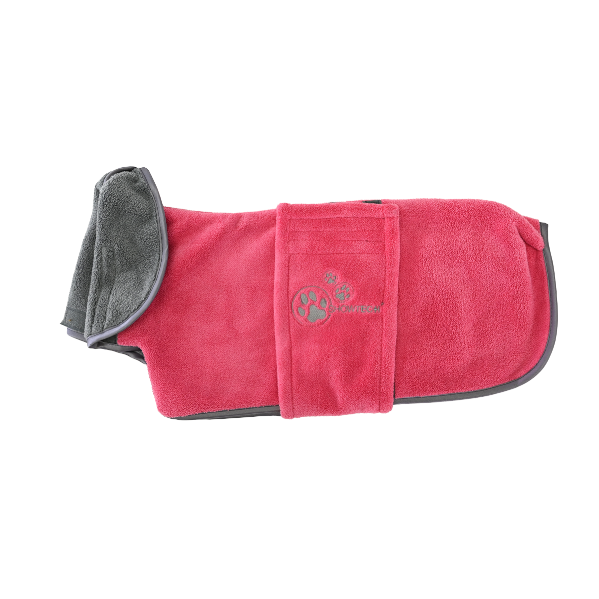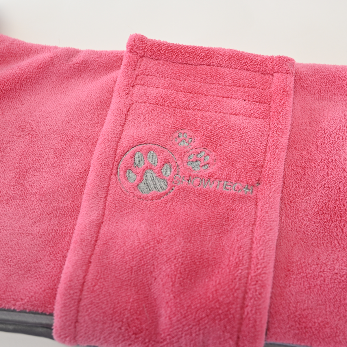 Deze geweldige jassen zijn gemaakt van een dubbele laag Coral Fleece van de beste kwaliteit. Hierdoor absorberen ze goed en drogen ze snel. De 2 verstelbare klittenbandensluitingen zorgen voor een perfecte pasvorm. Terwijl hij de jas draagt, kan je viervoeter zich hierdoor gemakkelijk en vrij bewegen. Perfect voor na een bad of na een wandeling om de binnenkant van je auto, vloer of de kooi van je hond te beschermen tegen vuil en water.