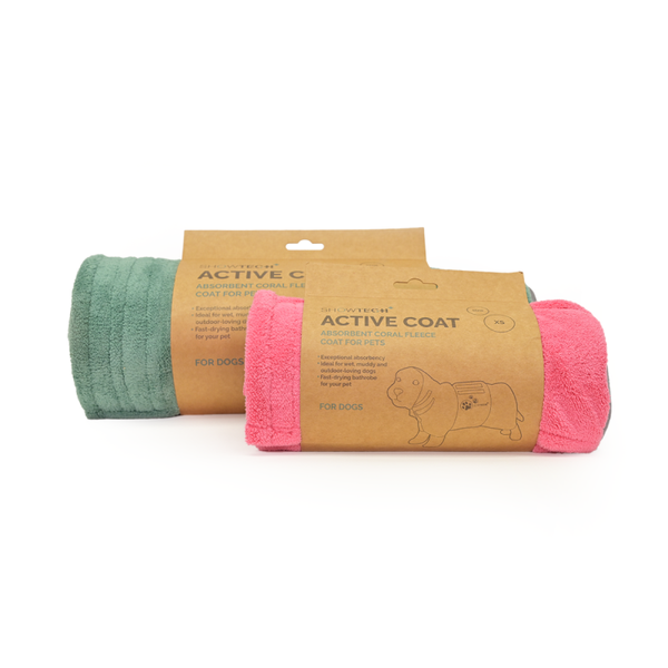 Wanneer je hond net gewassen is, wil je dat hij zo snel en gemakkelijk mogelijk droogt. Of misschien hebben jullie samen een boswandeling gemaakt of zijn jullie tijdens de training in de gietende regen beland en wil je je harige vriend warm houden. De Show Tech+ Coral Fleece Active Coats zijn de perfecte oplossing voor vuile en/of natte honden!